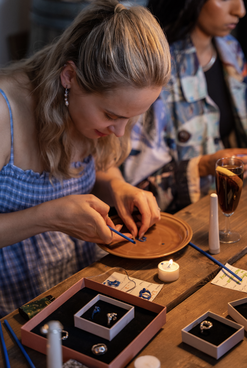 Admission to a 2-hour wax jewellery making workshop with Anna Katrine (AK) Parker from Melt Studio, set in a cosy, candlelit and welcoming environment with music playing.